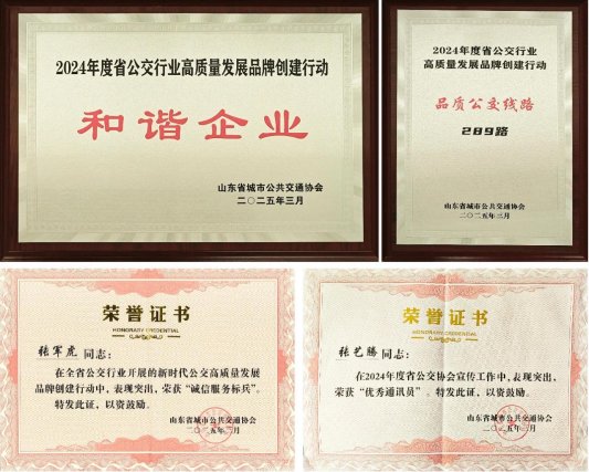 鲁网4月3日讯 3月28日,山东省城市公共交通协会七届四次会员大会暨2024年会在淄博召开,会上表彰了在2024年度新时代公交高质量发展竞赛活动中表现突出的先进单位和个人,荣成公交集团荣获多项荣誉,其中,荣成公交集团荣膺“和谐企业”称号,所属289路公交线获评“品质公交线路”,驾驶员张军虎被授予“诚信服务标兵”称号,张艺腾荣获“优秀通讯员”称号。